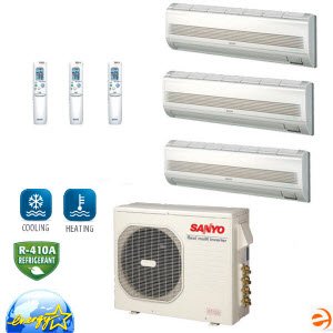 Note: Sanyo HVAC is in the process of becoming Panasonic HVAC. Many of the Sanyo products will continue to be offered under the Panasonic brand with the same quality and performance associated with the Sanyo brand. Before placing any orders for Sanyo products, please confirm availability with us by phone or email, as supplies are limited. We are doing our best to make the Panasonic models available as quickly as possible and appreciate your patience as we make this transition. Sanyo CM3172+KMS0972+(2)KMS0772 Wall Mounted Tri Zone Air Conditioner System - 24,000 BTU Sanyo CM3172+KMS0972+(2)KMS0772 Wall Mounted Tri Zone Air Conditioner Only is efficient and affordable solution to solve cooling needs in your apartament. Featuring Cooling Capacity of 24,000 BTU and highest manufacturing quality Sanyo Tri Zone Cooling Only System is the best choice to make even the hottest summer day fresh and comfortable.