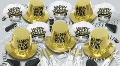 The Gold Rush New Year Party Assortment for 25. Each kit is packed complete in a corrugated shipper. Made in USA.