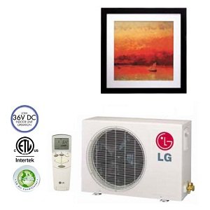 LG LA096HNP 9,900 BTU Heat Pump Art Cool Customizable Picture Mini Split Air Conditioner. Express your individual sense of style while cooling or heating your living or working space with this attractive, duct free air conditioning system from LG. This innovative model allows you to display your favorite image in the customizable picture area. Any drawing, photo or other graphic can be placed in the ART COOL frame. You simply lift the front panel up and out, and slide in the selected art work. Showcase your children's art work, a family portrait, or vacation pictures - - the choice is yours. A white mat border is included with the unit, which will support a picture up to 20" x 20" with a 17" x 17" visible area.