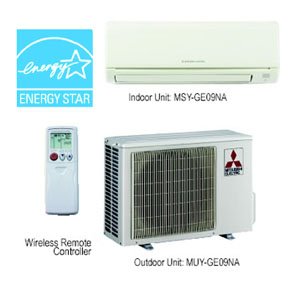 Mitsubishi Mr. Slim MSYGE09NA+MUYGE09NA, 208-230V, 1 PH, 21 SEER, 9,000 BTU, R410A, Ductless, Mini-Split, Wall Mounted, Inverter, Cooling System